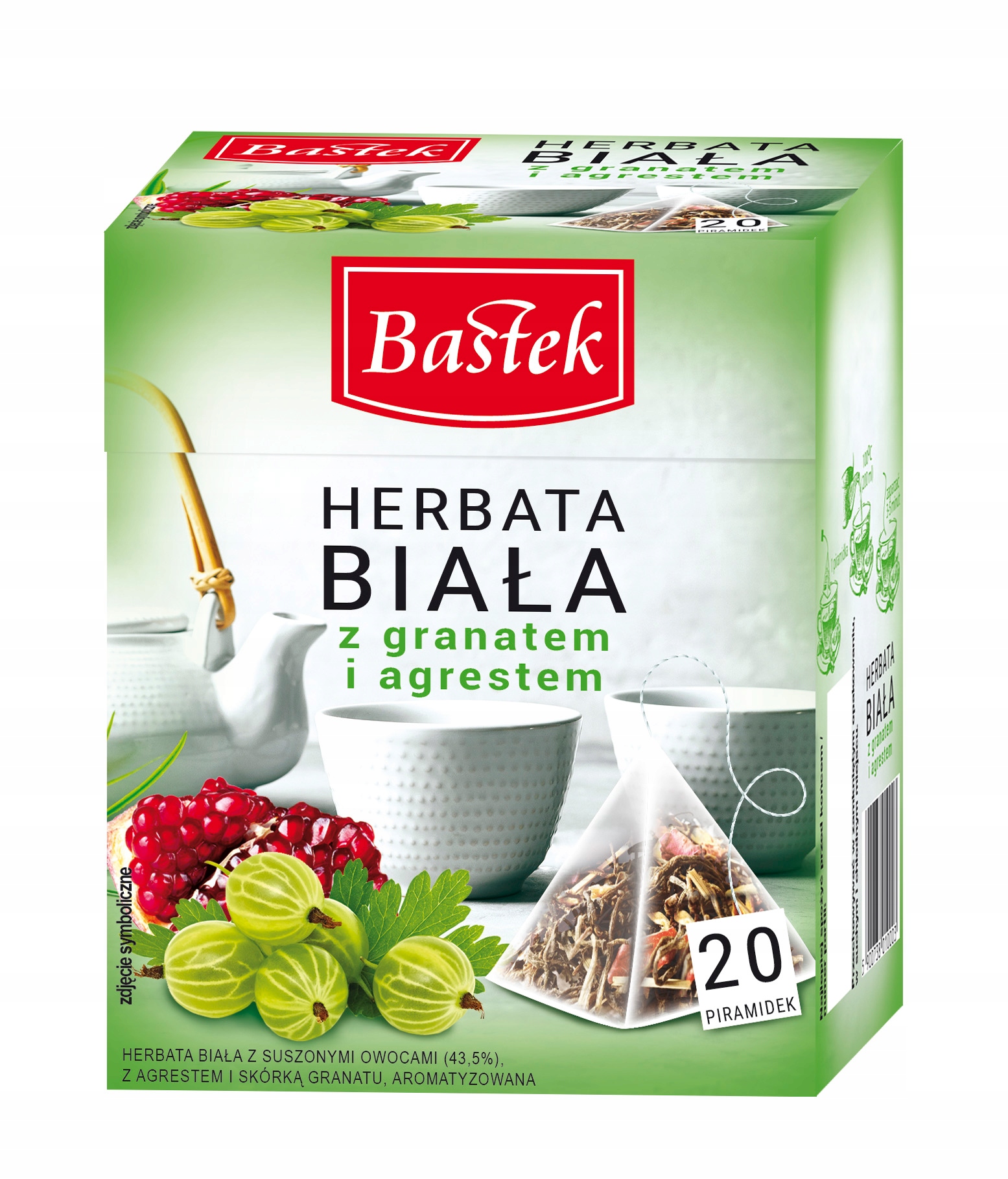 Biała herbata z granatem i agrestem Bastek w piramidkach 20 szt. x 1,5g