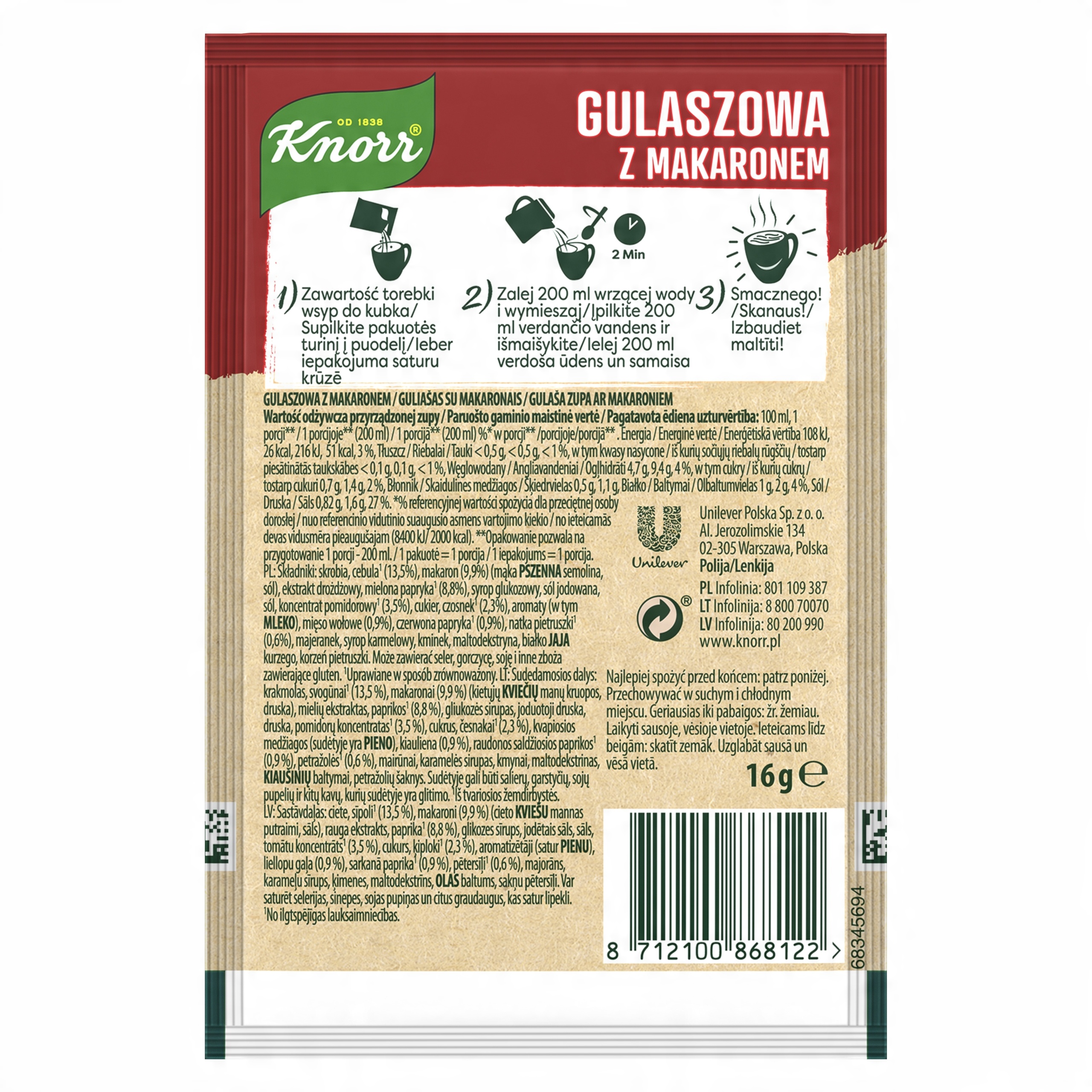 Knorr danie gotowe gorący kubek gulaszowa z makaronem 16g