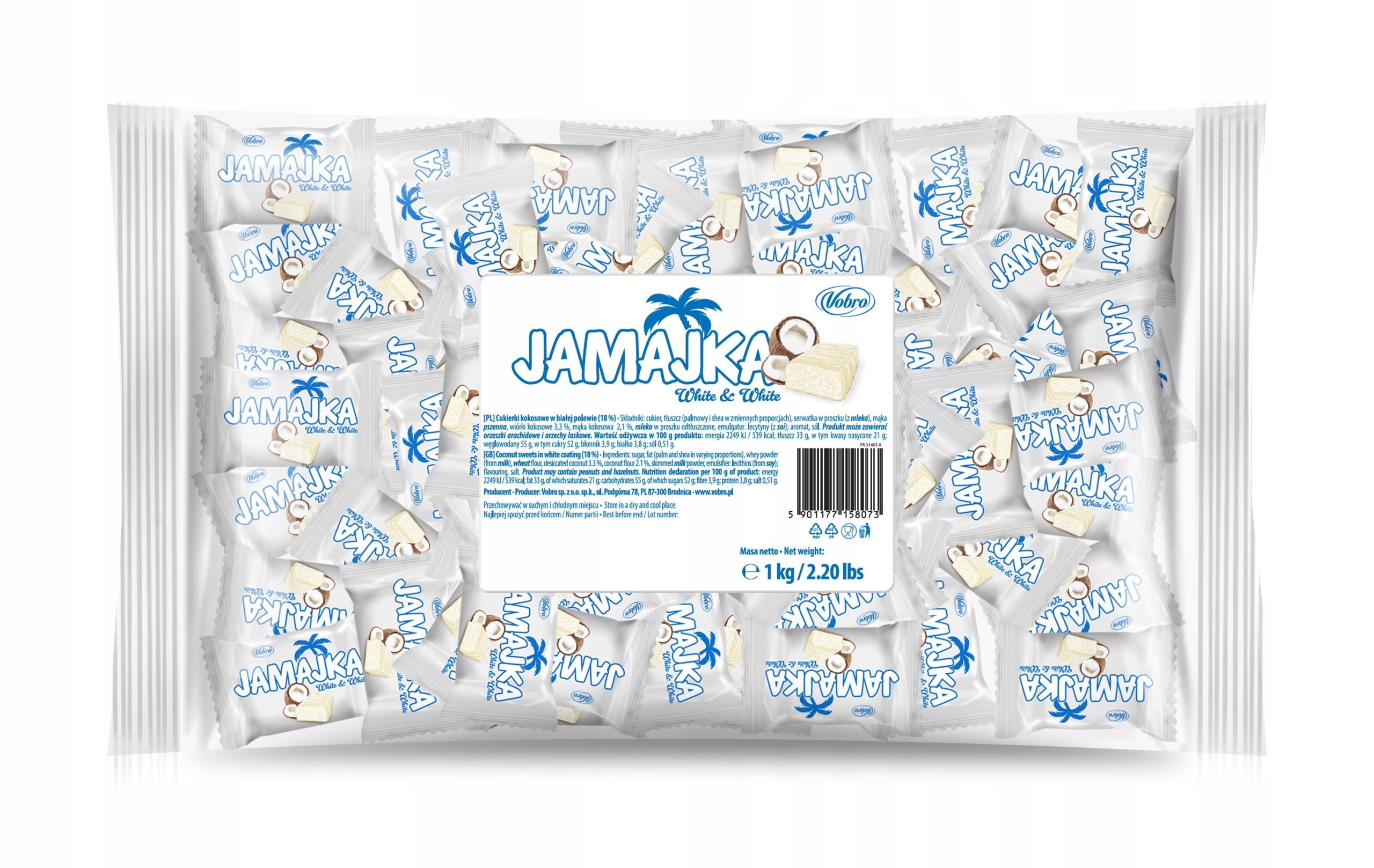 ✅ Vobro Cukierki Jamajka White & White Kokosowe w Białej Czekoladzie 1kg to nie tylko słodka przekąska, ale prawdziwa egzotyczna uczta dla zmysłów, która łączy delikatny smak białej czekolady z aromatycznym, kokosowym nadzieniem.
